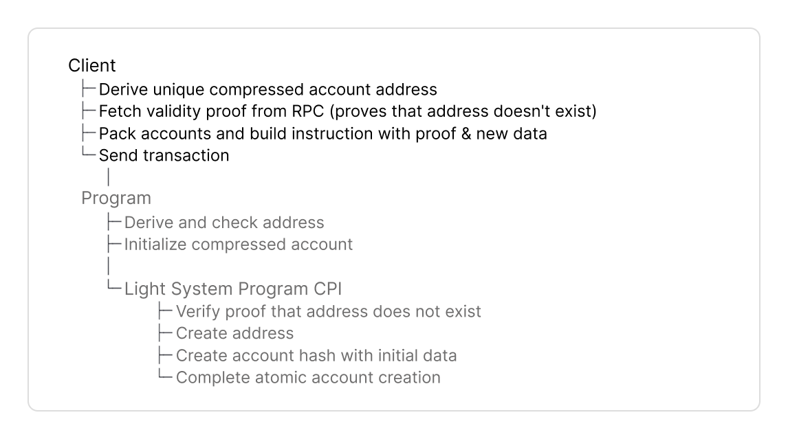 - Derive a new address or fetch compressed account for on-chain verification.